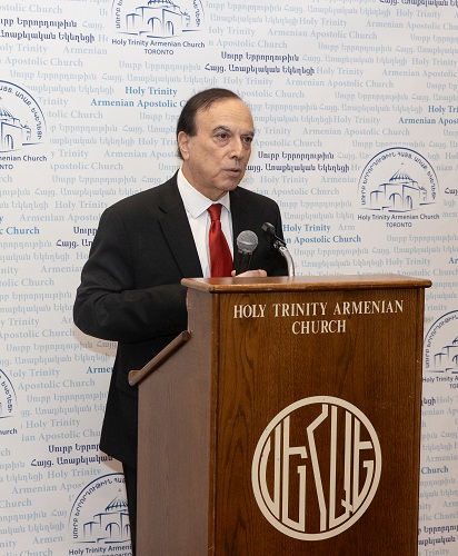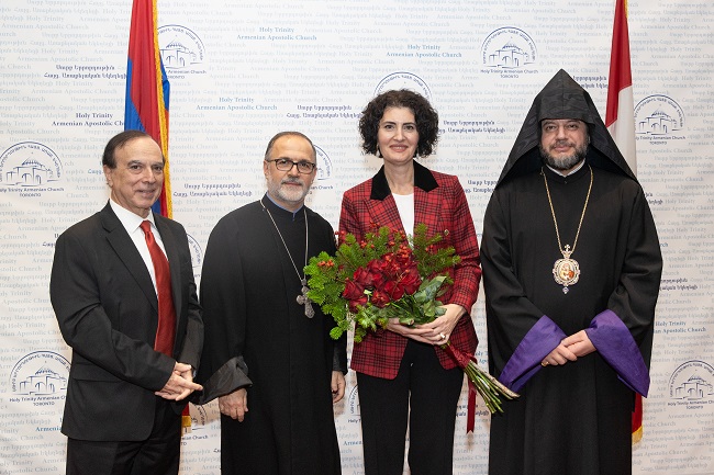 Տօնակատարութեան ներկայ էին նաեւ՝ Գանատայի մօտ Հայաստանի Հանրապետութեան Արտակարգ եւ Լիազօր Դեսպան, Նորին Գերազանցութիւն՝ Ազնուափայլ Տիկին Անահիտ Յարութիւնեանը, Օնթարիօ-Կիլուըտ շրջանի Երեսփոխան՝ Ազնուափայլ Տիկին Անտրէա Հէյզըլ եւ իր օգնականը։ Գանատահայոց Թեմի Փոխառաջնորդ՝ եւ Սբ. Երրորդութիւն Հայց. Առաք. Եկեղեցւոյ Հոգեւոր Հովիւ՝ Արժ. Տ. Զարեհ Աւագ Քհնյ. Զարգարեանը եւ Երէցկին Նայիրա Զարգարեանը, Եկեղեցւոյ Հոգեւոր Հովիւի օգնական՝ Արժ. Տ. Հայարի Քհնյ. Թանաշեանն ու Երէցկին Մակի Թանաշեանը, Քոյր եկեղեցիներու հոգեւոր հայրեր՝ Գերյարգելի Հայր Եղիա Ծայրագոյն Վարդապետ Քիրեճեանը, Հոգեւոր Հովիւ Սուրբ Գրիգոր Լուսաււորիչ Կաթողիկէ Եկեղեցւոյ, Գերապատիւ Տ. Վարդան Ծայրագոյն Վարդապետ Թաշճեան, Հոգեւոր Հովիւ Ս. Աստուածածին Հայց. Առաքելական Ս. Եկեղեցւոյ, Տէր Հարոլտ Քահանայ Նահապետեան, Անգլիկան Եկեղեցիեն, Հայ Աւետարանական Եկեղեցիէն՝ Տիկին Հռութ Տեմիրճեան, կազմակերպութիւններու ներկայացուցիչներ եւ համայնքի զաւակներ։ Գանատայի եւ Հայաստանի Հանրապետութեան քայլերգներու ունկնդրութենէն ետք, թիւով շուրջ 230 հրաւիրեալներուն բարի գալուստ մաղթեցին հանդիսավարներ՝ Տիկին Անի Սարվարեան (Հայերէն) եւ Տիար Ռաֆայէլ Սաքարեա (Անգլերէն)։