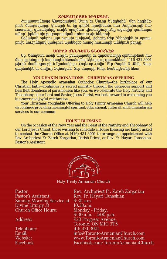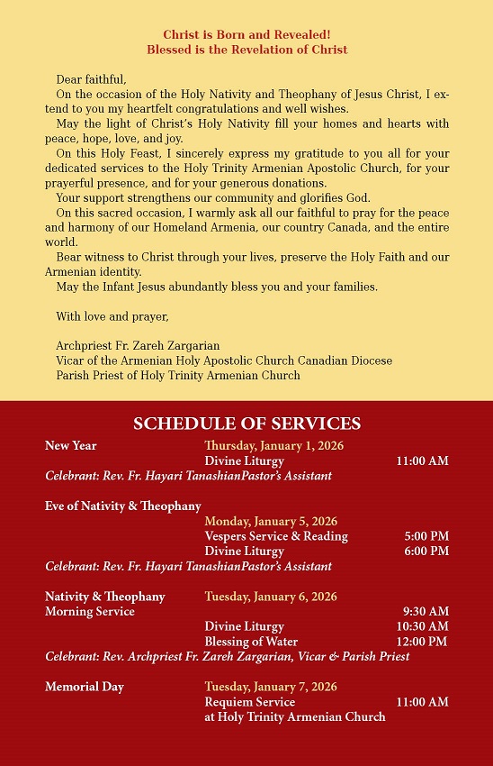 Schedule of New Year & Christmas Services 2026