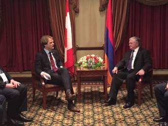 Upon arrival, Minister Alexander met with Armenia’s Minister of Foreign Affairs, Edward Nalbandian. Alexander and Nalbandian discussed Canada’s principled position on the recognition and commemoration of the Armenian Genocide, and the strong people-to-people relationship between Armenia and Canada.