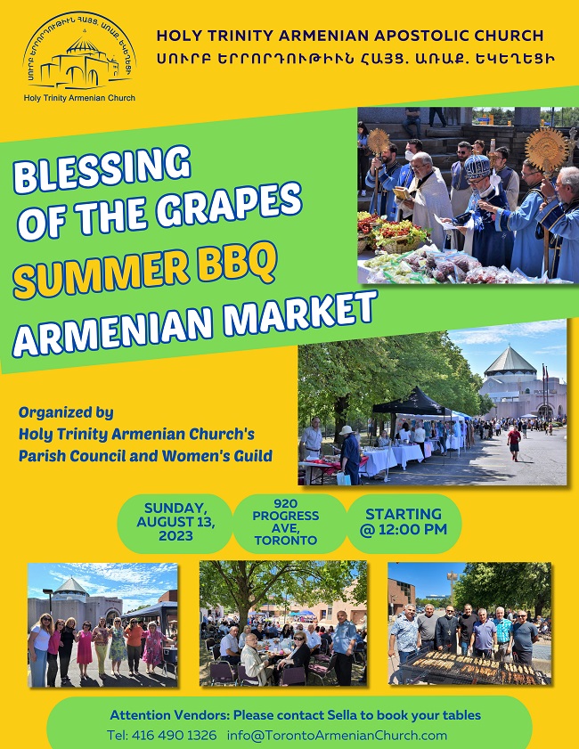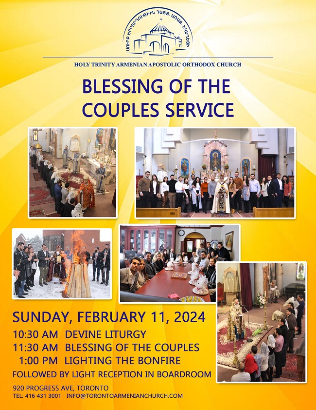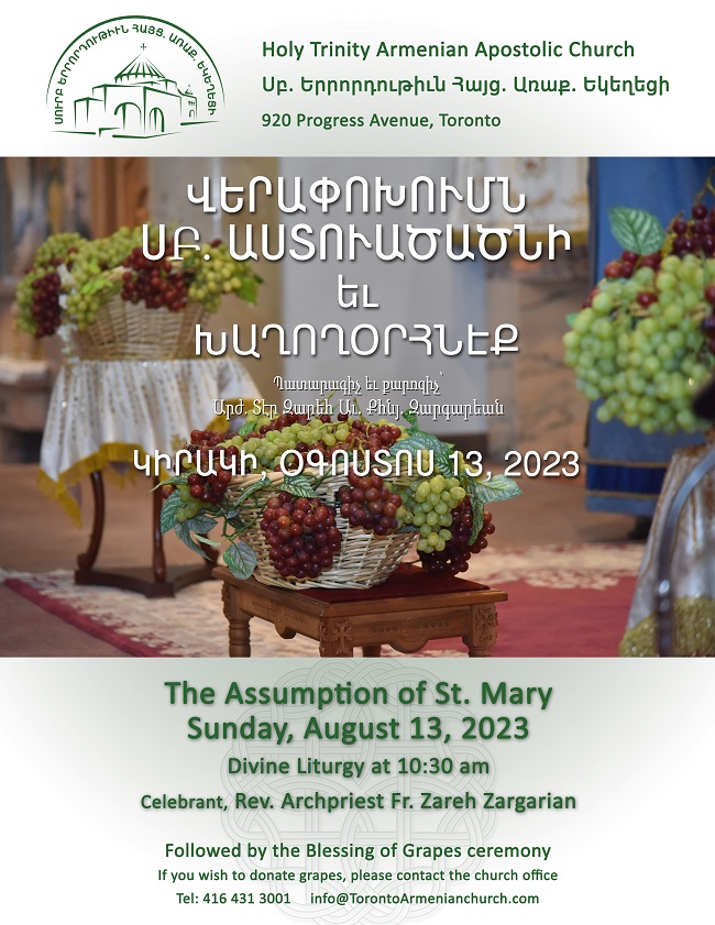 HTAC 920 Progress Avenue, Toronto, Ontario, CanadaՅաւարտ Ս. Պատարագի սիրով կը հրաւիրենք վերոյիշեալ անունները կրող մեր հաւատացեալները ստանալու Աստուծոյ օրհնութիւնը: At the end of Divine Liturgy, those who carry the above mentioned names are invited to Holy Altar to be blessed on this festive day.