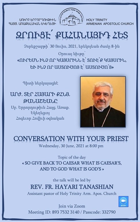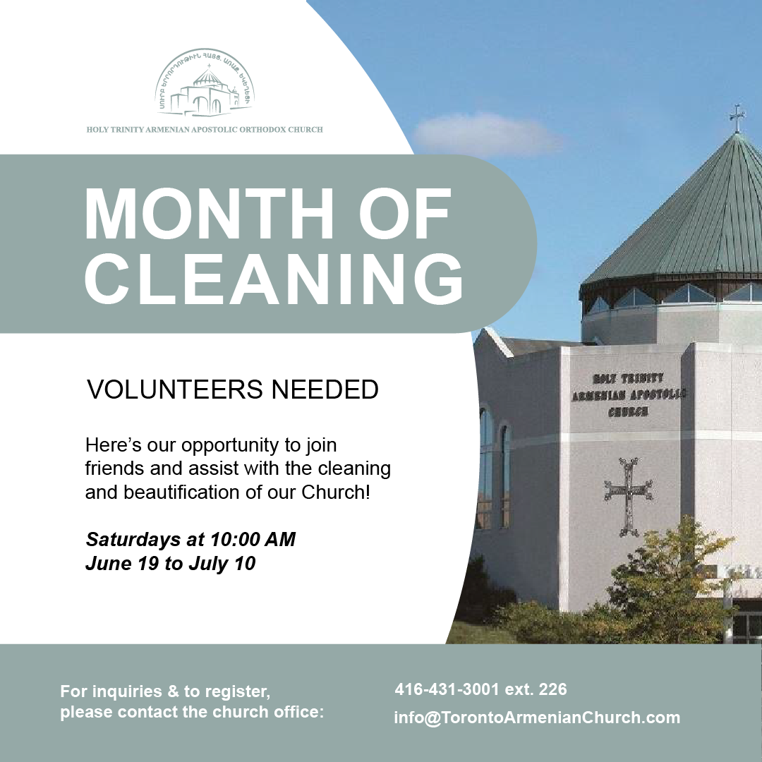 HOLY TRINITY ARMENIAN APOSTOLIC CHURCH’S MONTH OF CLEANING AND BEAUTIFICATION Dear friends, you are invited to participate in the cleaning and beautification campaign of our holy church’s outdoor grounds. On Saturdays, starting 10:00 am June 19: Cleaning of the exterior grounds June 26: Renovation of the exterior grounds July 3: Exterior painting projects July […]