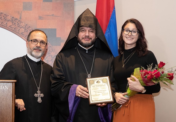 Seven members of the Parish Council, whose term was completed, were recognized for their dedication by His Grace the Primate and the Rev. Archpriest. Certificates of Appreciation were given to Ms. Yvette Panossian – Woman of the Year; Mr. Ara Ter Haroutunian – Man of the Year; Miss Naré Shahmouradyan – Young Woman of the Year; Mr. Aren Zargarian – Young Man of the Year; Mr. and Mrs. Levon and Sella Kaltakjian and their children Sako and Elize – Family of the Year.
