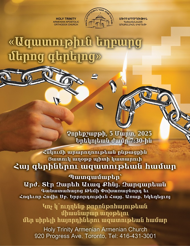 We invite all Toronto Armenians to come together in prayer for the freedom of our beloved Armenian detainees.