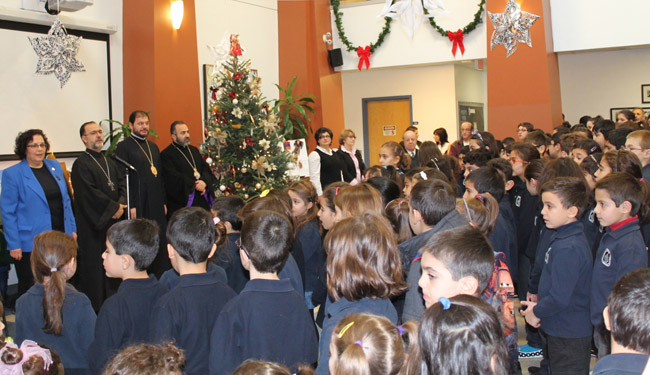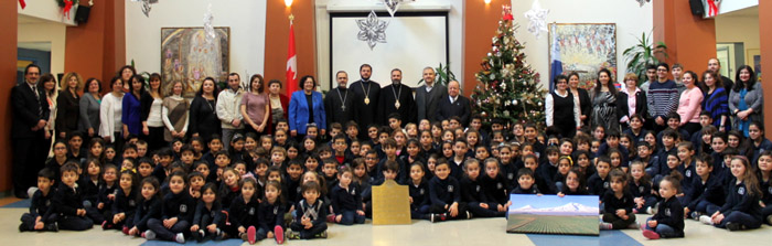On Saturday, December 6, 2014, His Grace Bishop Abkar Hovakimian, Primate of Armenian Church, His Grace Bishop Datev Hagopian, Primate of the Armenian Church Diocese of Romania and Rev. Archpriest Fr. Zareh Zargarian, Parish Priest of Holy Trinity Armenian Apostolic Church visited St. Sahag St. Mesrop Armenian Saturday School.
